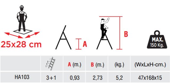 Escabeau Aluminium HAZAR HA103 à 4 Marches CAGSAN